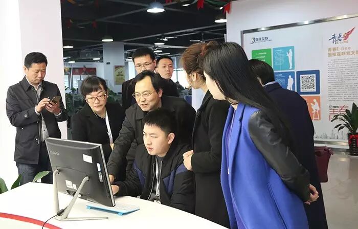 在国技互联总经理金建月女士、社会化媒体事业群总经理任全先生的热情接待和陪同下,各位领导参观了国技互联E-line平台的各项特色党建模块及其内容,如E-line在线平台(推进在线互动)、E-line竞技场(凝聚团队智慧和力量)、E-line微社区(团队互动平台)、E-line创梦场(鼓励员工创新创业)、E-line国技大学(提升员工素质和技能)、E-line肉松日(激发员工创新潜能)等。众领导纷纷表示,像国技互联这样将党建工作从形式落实到实质,并且巧妙的结合互联网与党建的特性,做出具有国技特色的互联网党建模式,真可谓匠心独具,值得赞赏和学习。